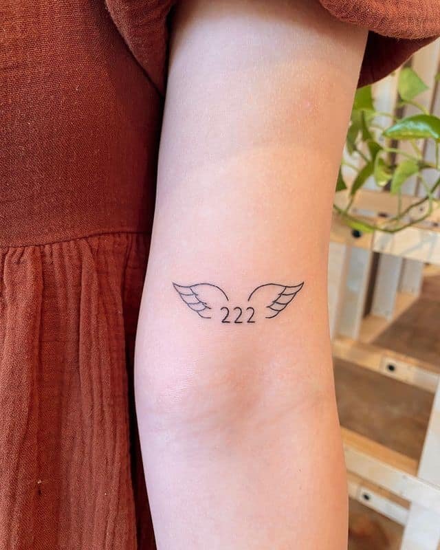 Add fine-lined wings and suddenly 222 feels airy and hopeful. The wings give it movement and freedom, like a reminder that growth is part of the journey and rising above is possible.