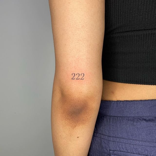 Placing 222 just above the elbow feels private and intimate — like a secret reminder you carry with your movement. It’s small, discreet, and every time you bend your arm it nudges you: you’re in sync with the rhythm of your life. Trust the timing, friend.