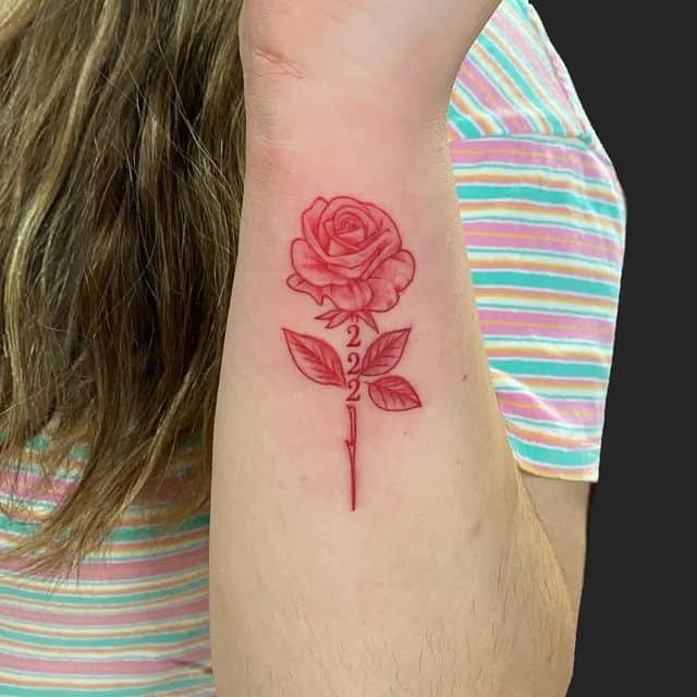 A red rose with 222 woven into the stem is romantic and symbolic — love, connection, and alignment braided together. It’s the kind of piece that feels timeless, like a poem on your skin.