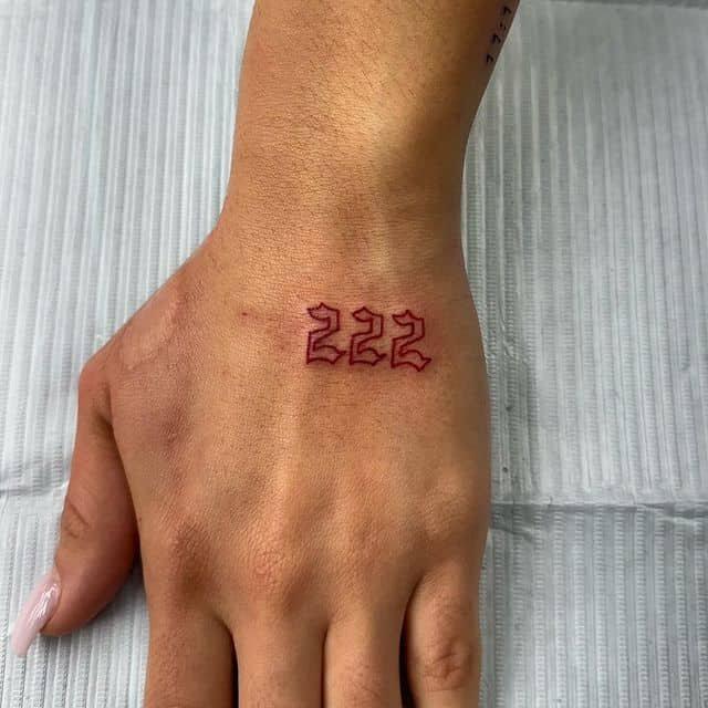 There’s something sweet about matching numbers with your person — whether it’s your ride-or-die friend or your partner. Matching 222 tattoos feel like a promise to remember shared timing and shared trust in whatever the universe is doing for you both. It’s not just about being cute together; it’s a reminder that you’re aligned, even when life pulls you different ways.