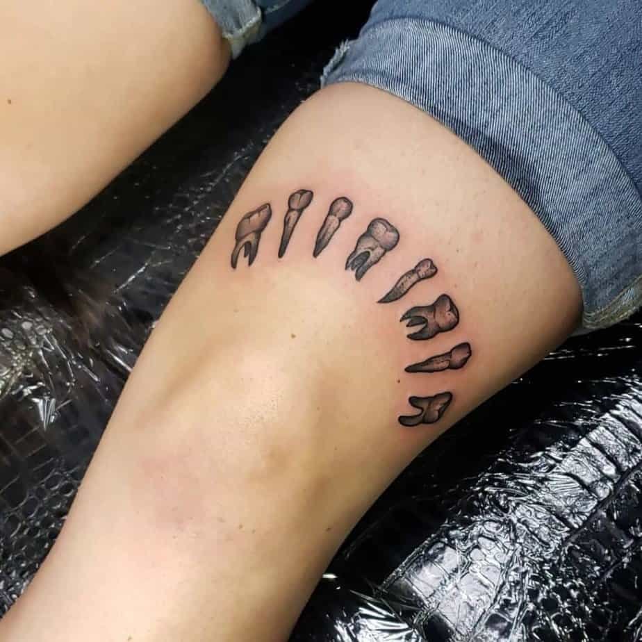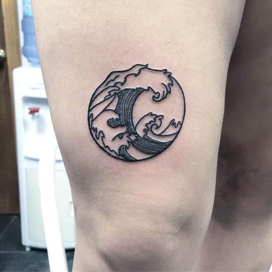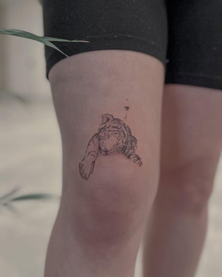 If you want to be one of the few who goes off the beaten path, these designs are for you. Cherubs in this placement feel rare and whimsical, a teeth-motif tattoo reads like artful surrealism, and a simple circular wave is perfect if you love the ocean but want something graphic and minimal. There’s even a seventies-inspired colorful patch that feels like a mood board come to life, and an adorable tiger cub that uses the knee as a playful prop so the whole piece feels like it’s sleeping on a little round pillow. Unusual can be so charming when it’s thoughtfully placed.