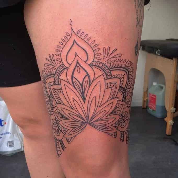 Mandalas are sort of made for this area — they symbolize balance and can be cropped to wrap around the knee in a way that looks intentional, not awkward. Think three-quarters of a mandala curving around the joint so it feels like it belongs there. You can go crisp and simple with clean lines, or pack in tiny details that still read beautifully from a short distance. The trick is placement: let the mandala flow from the thigh over the top of the knee and it will look like it was always meant to be there.