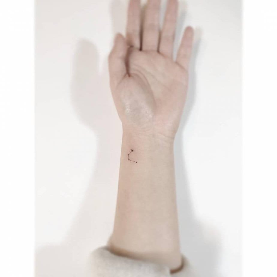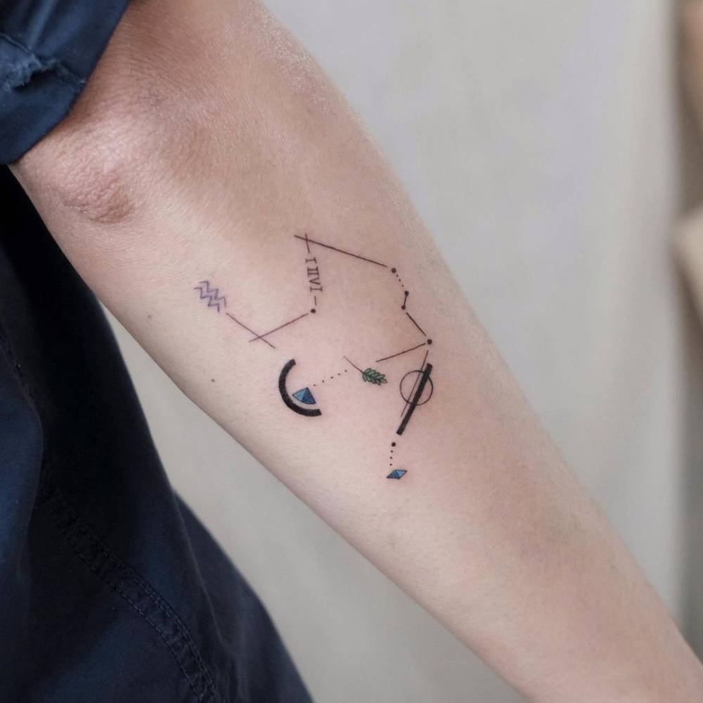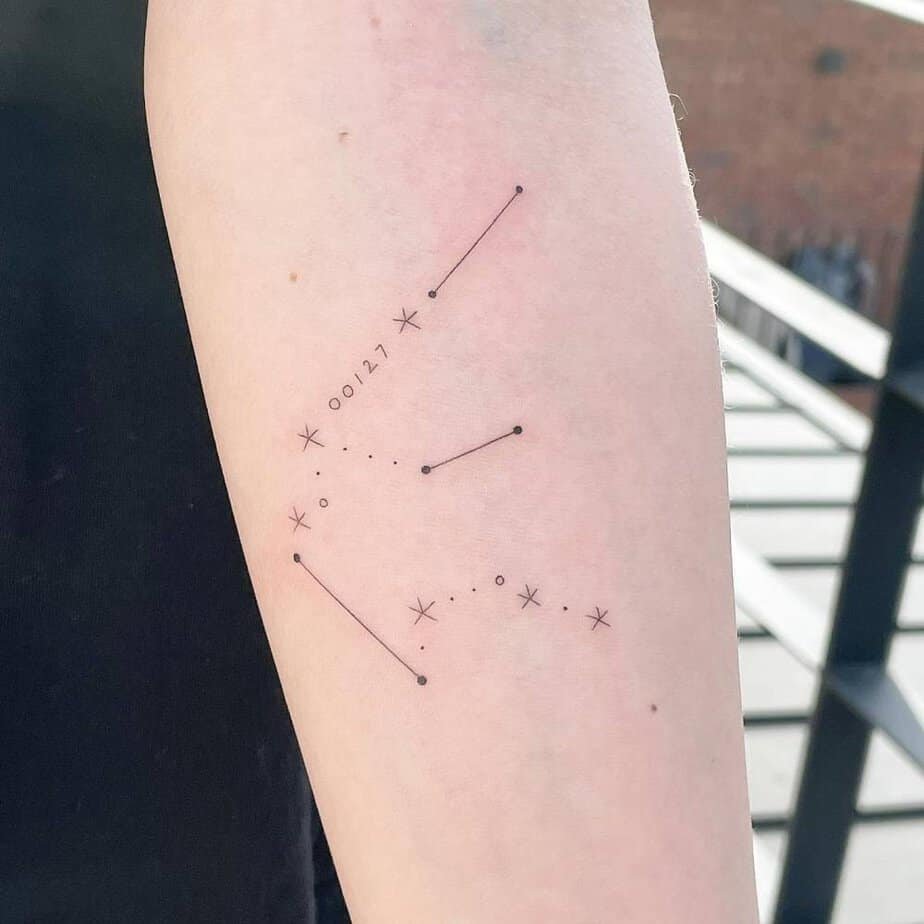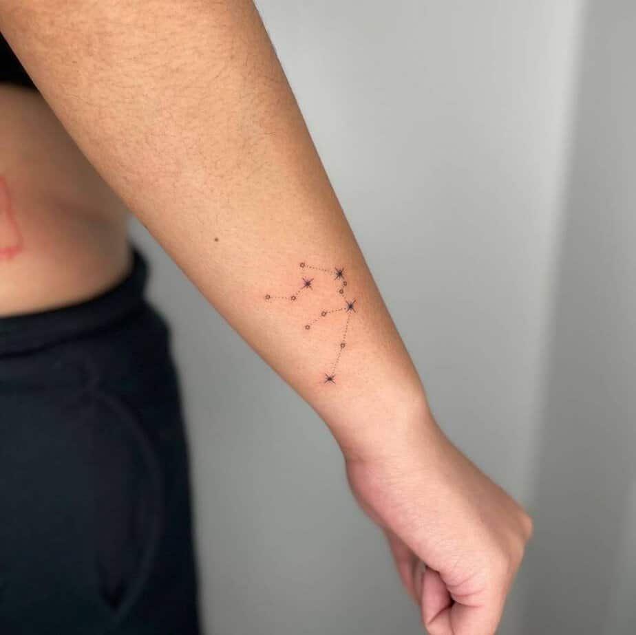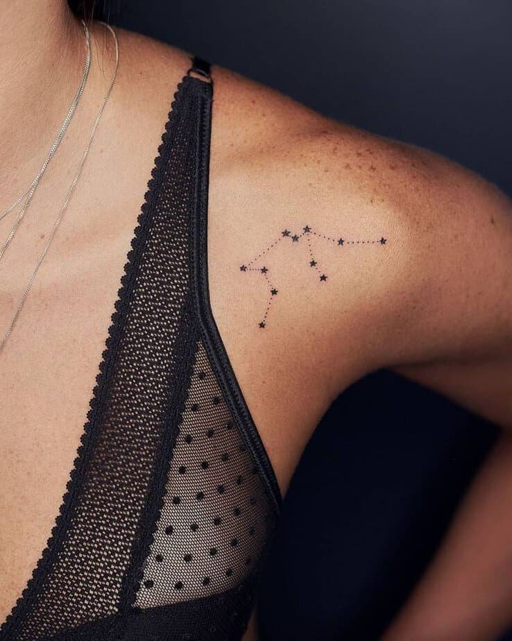 Tucked on the hip, this is the kind of tattoo that feels personal — yours to share or keep private. Slim lines and tiny dots form the constellation in a way that’s discreet but deeply meaningful. For the Aquarian who prefers to keep their truth close.