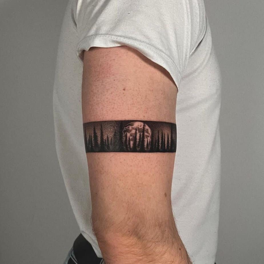 If forests make your heart happy, this is such a cozy choice. The cool thing about a wraparound forest design is you can add as many little details as you want — each angle of your arm tells a different part of the story, like a tiny narrative of trees and sky.