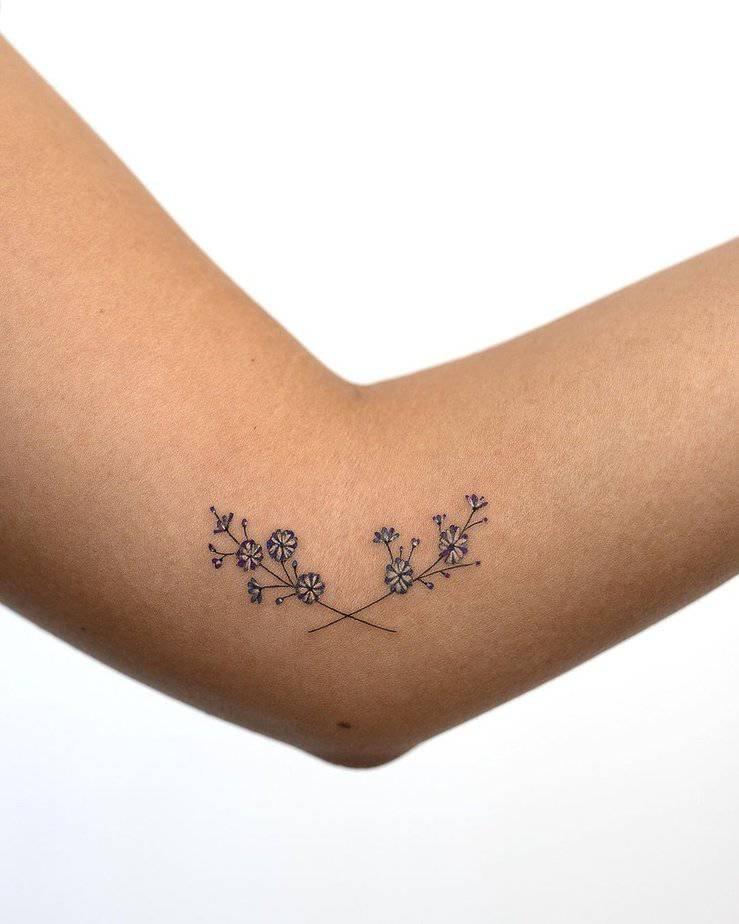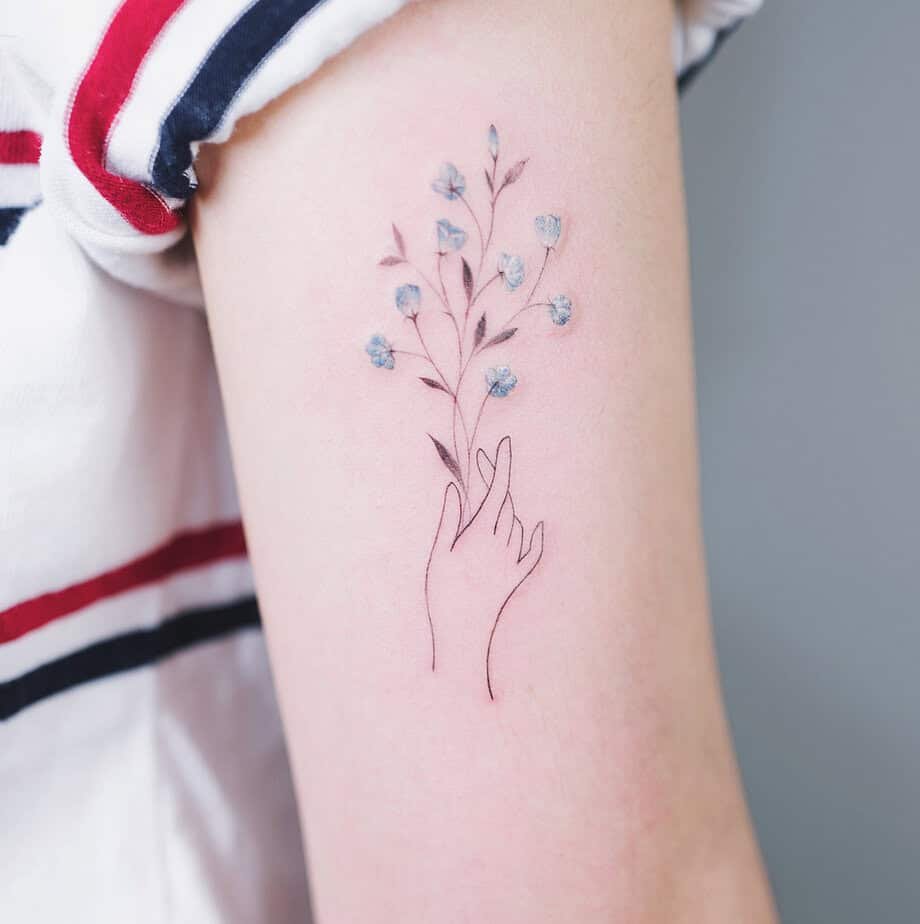 Blue tones on baby’s breath carry this beautiful message of loyalty and trust. It’s subtle but meaningful, and on the forearm it becomes a little daily reminder — to yourself and to those who see it — that devotion and steadiness matter. Also, it just looks stunning.