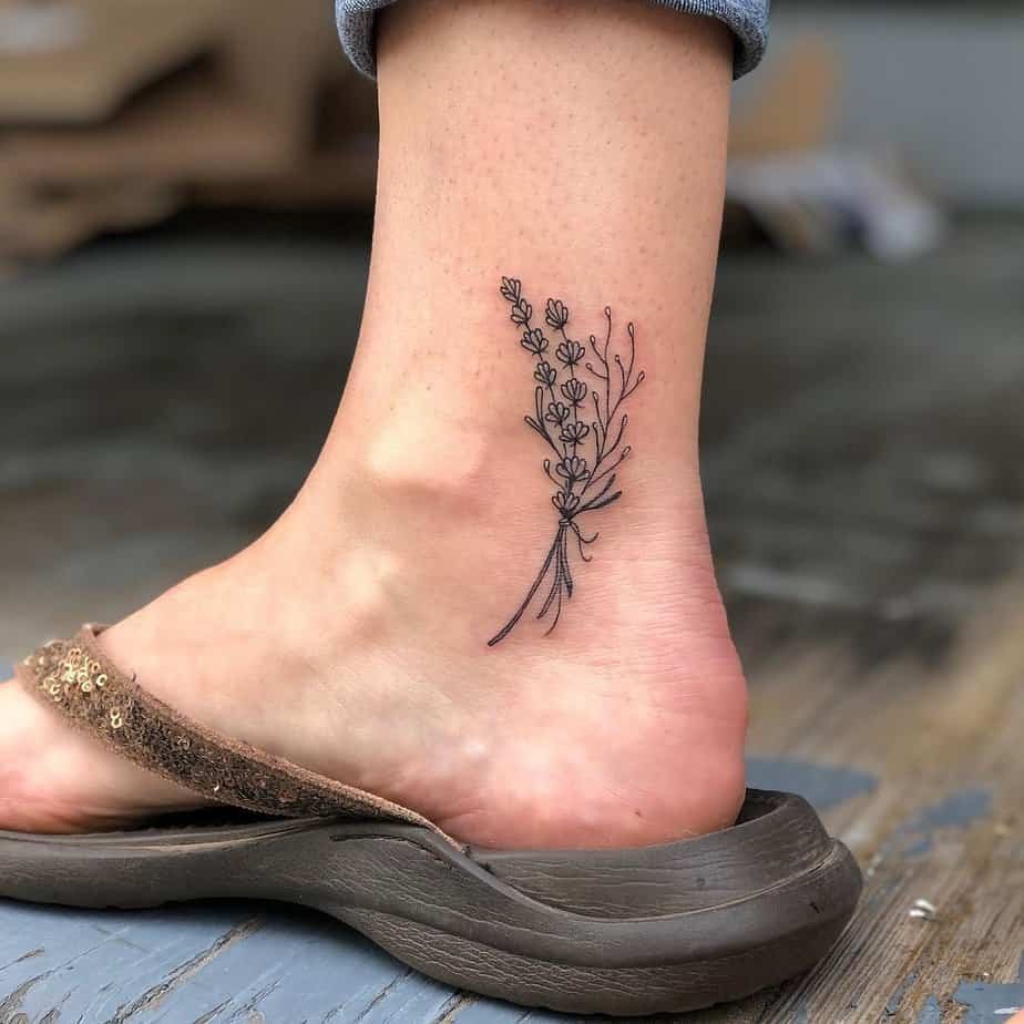 Pairing lavender with baby’s breath is just chef’s kiss. Baby’s breath brings innocence and purity, while lavender pulls in calm and inner peace — together they say, “let’s slow down and breathe.” Ankle placement keeps it quiet and personal, but it still adds this subtle, soothing note to your overall style.