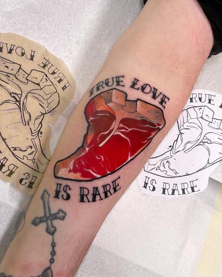 If you’re into tattoos that look like they could jump off your skin and onto a plate, this realistic BBQ is for you. It’s all about the details and shading — makes the whole thing look impossibly real.