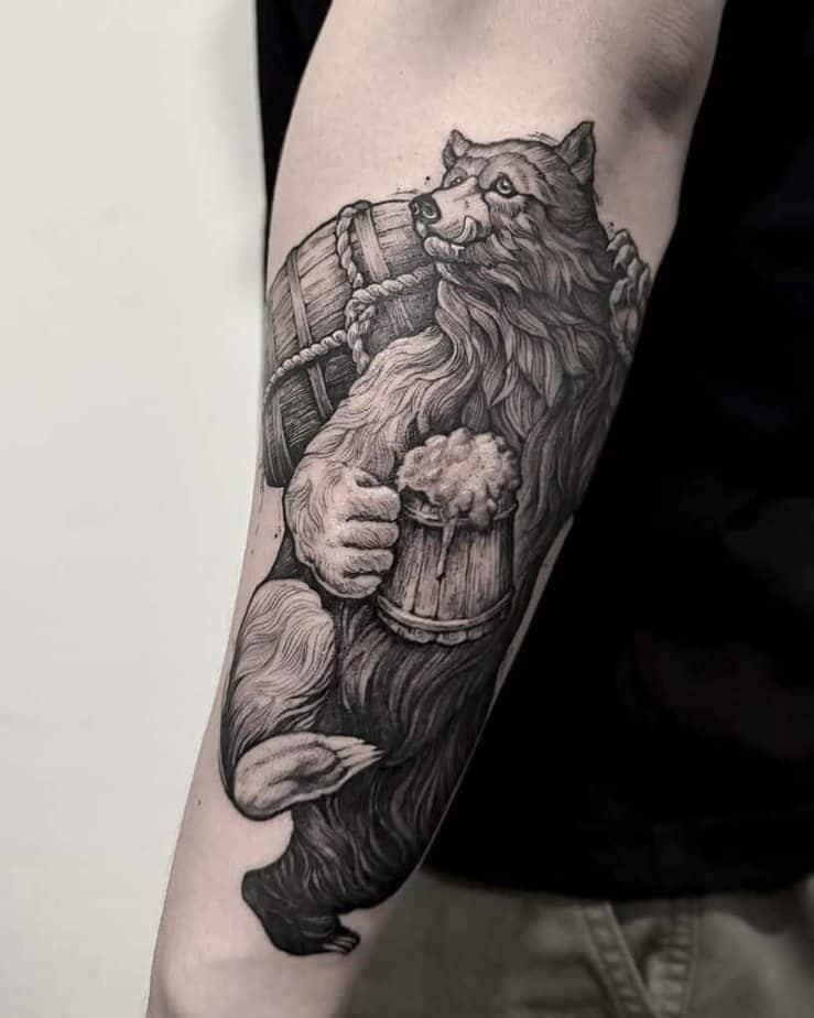 A Silly One: Bear Drinking a Beer on the Forearm