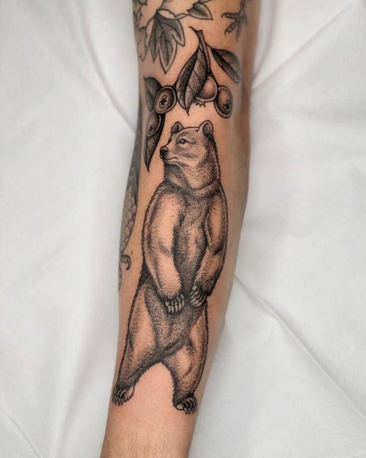 Black and gray doesn’t mean boring. A forearm bear with clean lines, a few subtle clouds, and thoughtful shading can feel modern and understated, while still packing emotional and visual punch.