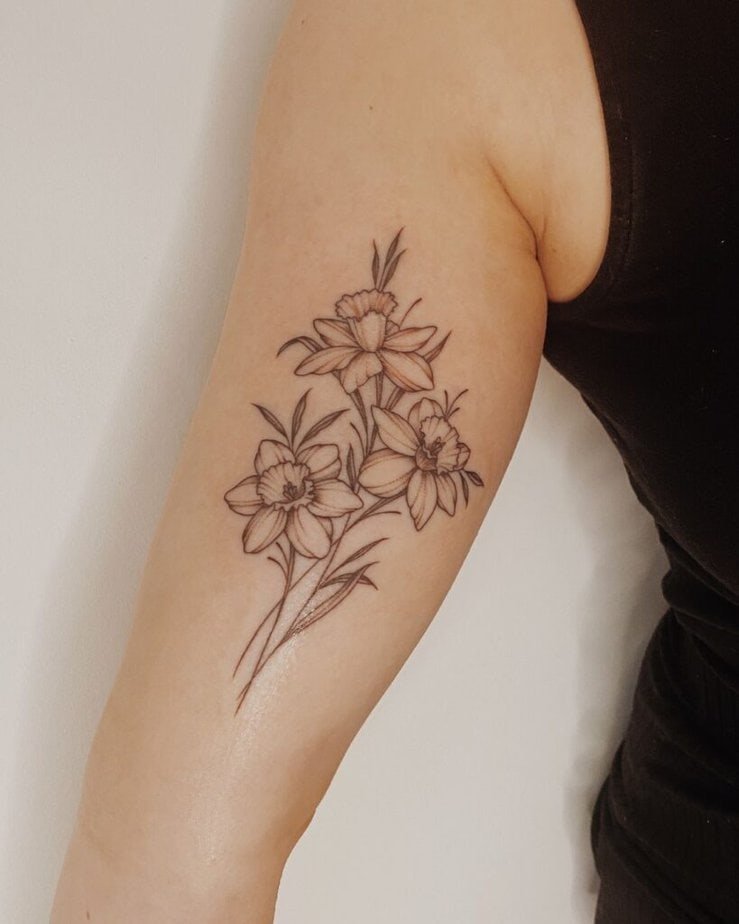 Daffodils are such a sweet pick if you want a reminder of new beginnings. They read hopeful without being saccharine, and floral tattoos almost never go out of style. If you want something soft but meaningful, this does the job.