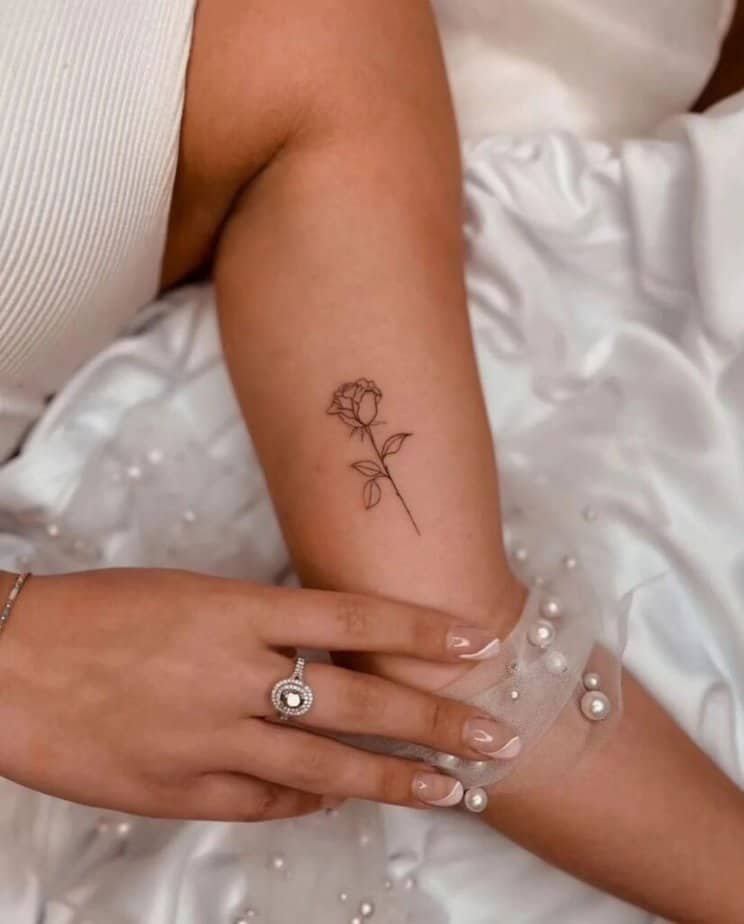A rose is classic — it’s familiar, romantic, and you can scale it down so it stays subtle. If you want a little symbolism without a huge commitment, a tiny rose on the bicep is quiet and chic. Pick a fonty stem or just a simple outline and you’re golden.