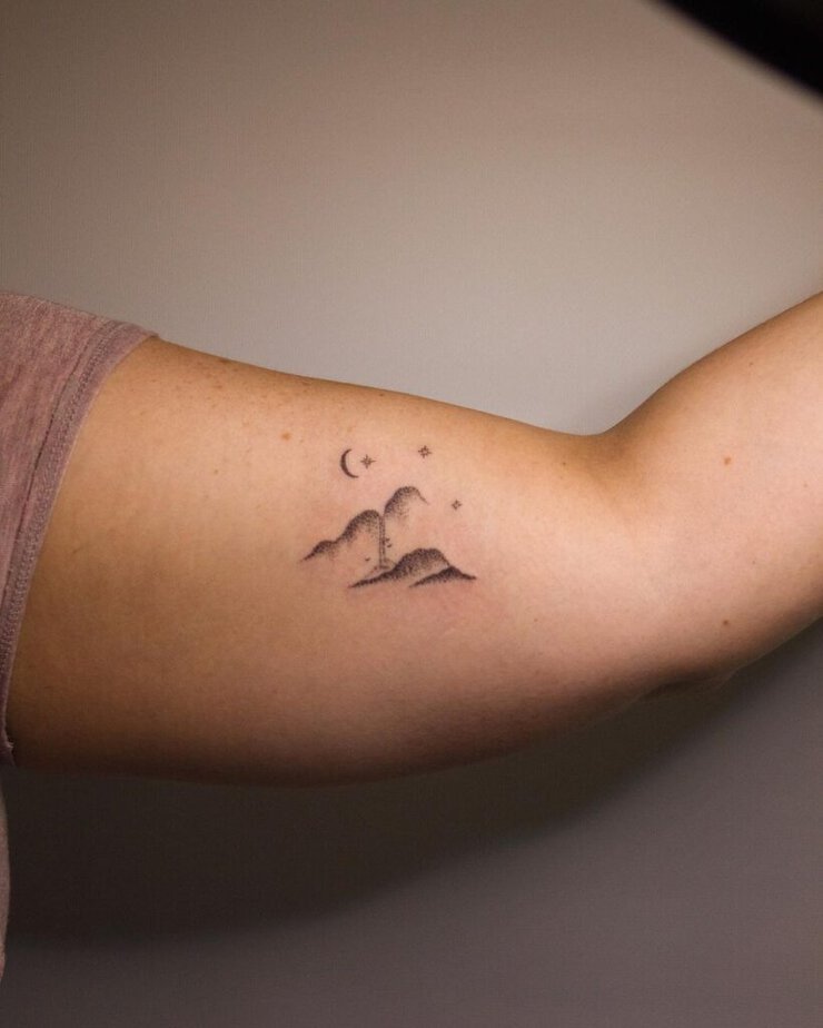 Ever had a view that stole your breath? Tattooing a small landscape on your bicep is like carrying that memory with you. It’s personal and poetic — a private postcard you can glance at whenever you want.