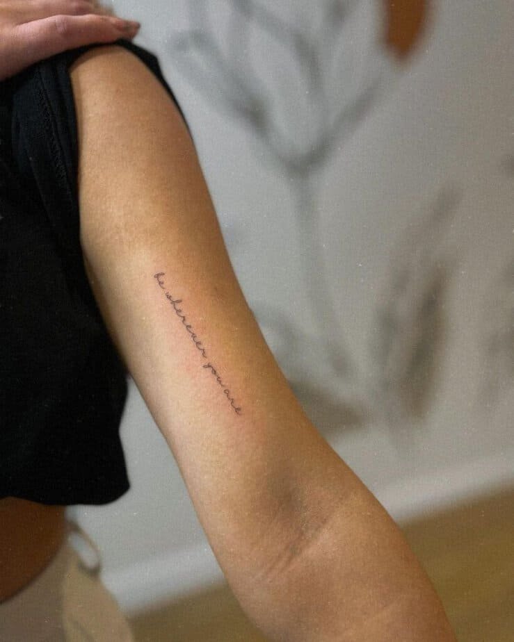 Your bicep is a great place for small script. Pick a line that grounds you, choose the font that matches your vibe, and let your artist do the rest. It’s like wearing a tiny mantra every day.