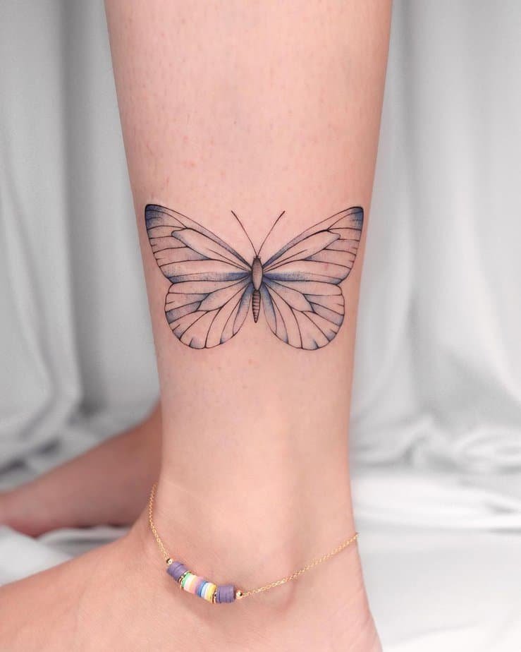 If you love delicate, understated ink, this fine-line blue butterfly is so sweet. It’s cute and subtle but still packs personality. Perfect if you want something tender without shouting for attention.