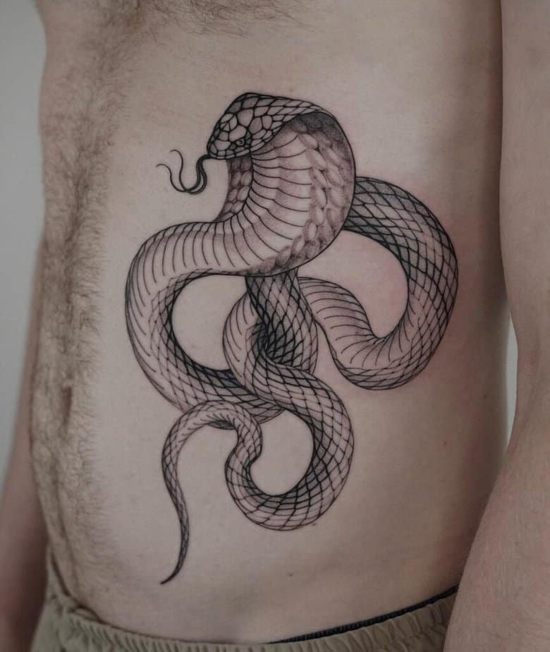 Because your body twists and shifts, a cobra on the side of your stomach can feel alive — it hugs the softer canvas and looks gorgeous in motion. Just make sure your artist is down with working on more tender skin.