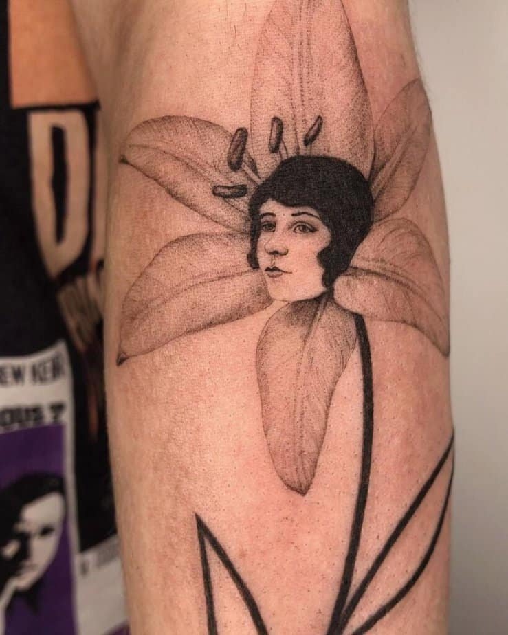 This one’s a bit outside-the-box: a head cradled in a huge petal. It’s strange at first, then quietly moving — a symbol of personal growth and the weird kind of beauty that comes after hard things. If you want your tattoo to do more than just look pretty, this one speaks in metaphors.