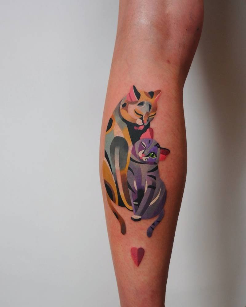 Cats are already mysterious; paint them in abstract, vivid colors and they become performance art. Two cats here, full of personality — it’s playful, bold, and a little mischievous, just like any good feline.