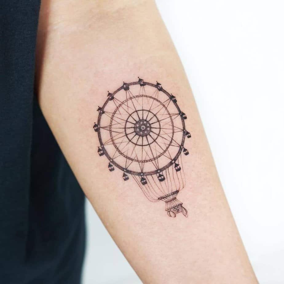 This one gives me daydream vibes: a Ferris wheel paired with a hot air balloon for that carnival-in-the-sky feeling. It’s whimsical without being childish, perfect if you love small adventures and nostalgia.