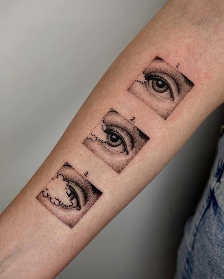 Three versions of the same eye — calm, gathering, and full tempest. It’s poetic and a bit ominous, a neat way to show perspective and resilience: you see through the storm and you keep going.