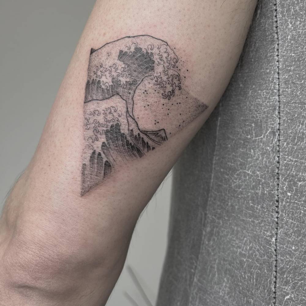 If the ocean speaks to you, this tattoo answers back. The waves flow inside a triangle, balancing natural motion with clean geometry. It’s soothing, modern, and quietly dramatic — great for anyone who carries the sea inside them.