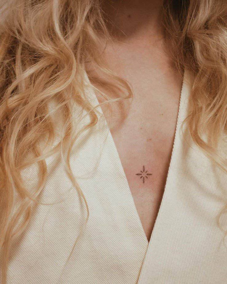 If you’re not ready to commit to a big piece, tiny ornamental tattoos are the cutest gateway. They’re simple, kind of flirty, and won’t overwhelm your chest. Honestly, they feel like a little secret you wear — easy to hide, easy to show, and somehow always chic.