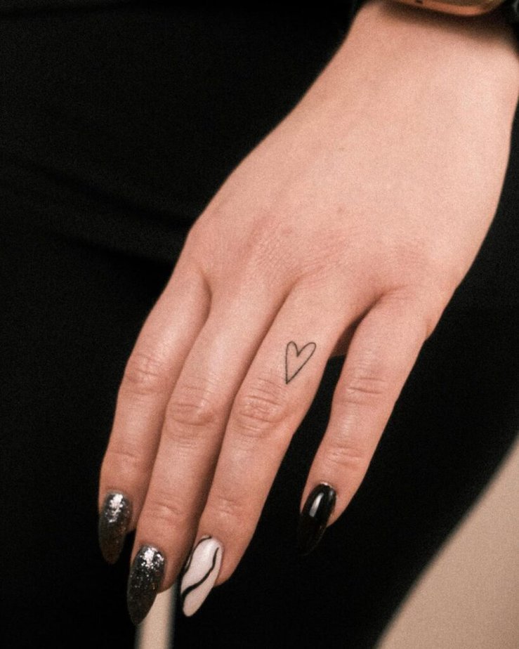 Hearts are classic for celebrating love in all its forms — romantic, platonic, familial, or self-love. A small heart on the finger is cute, wearable, and always reads as sweet rather than dramatic.