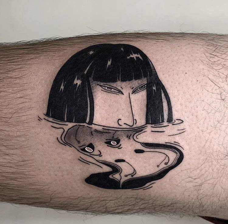 This black-and-gray arm piece has a ghostly figure coming out of the water, and the reflections in the ripples are chilling. If you love horror aesthetics or just like tattoos that make people do a double take, this one’s a beautiful, unsettling choice.