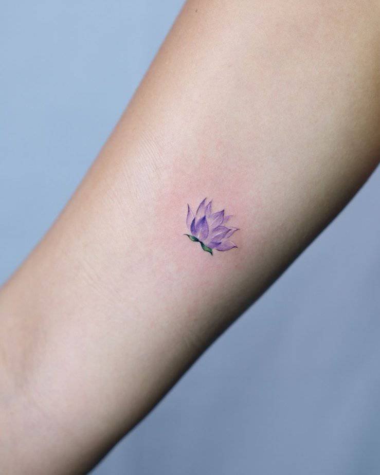 Small but meaningful, this purple lotus reads purity and enlightenment without needing a lot of space. It’s one of those tiny tattoos that quietly holds a lot of heart.