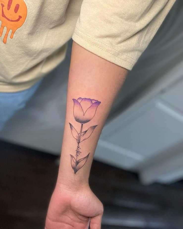 This little arm sprig proves that small tattoos can have big feelings. Slim stem, tiny petals, a soft purple — it’s a quiet nod to calm and simplicity. If you love subtle reminders and delicate designs, this one’s basically made for you.