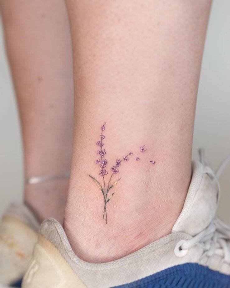 Ankle tattoos like this feel like secret little gifts you can show off when you want. That soft purple is calming — lavender as a reminder to breathe a little slower? Yes, please.