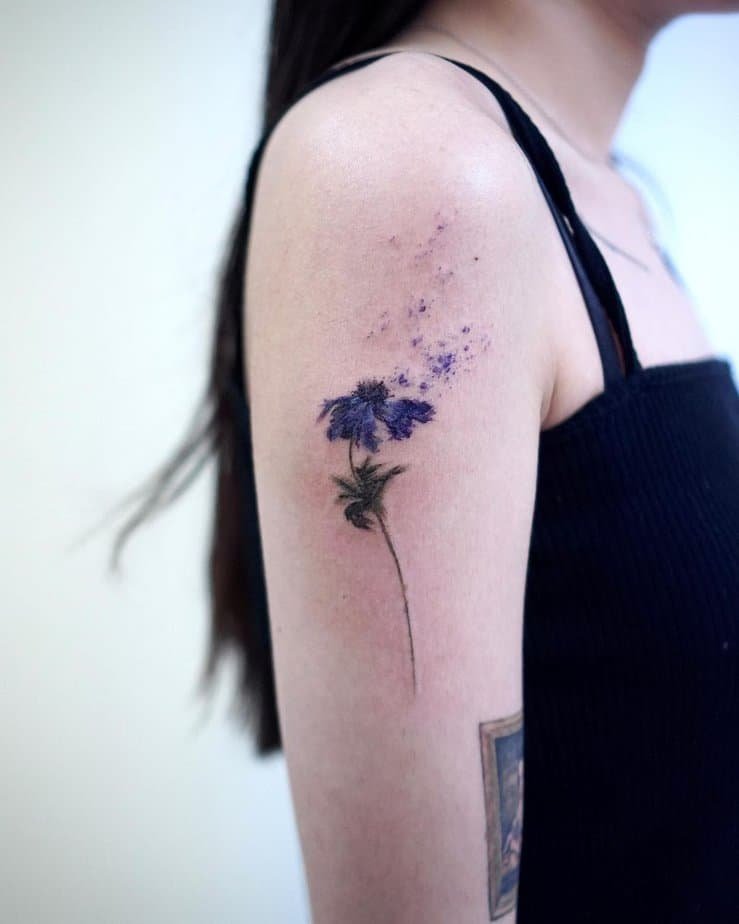 For the painterly souls: a shoulder splash of purple watercolor that looks like brushstrokes on skin. It’s loose, fluid, and free-spirited — perfect if you want something artistic rather than literal.