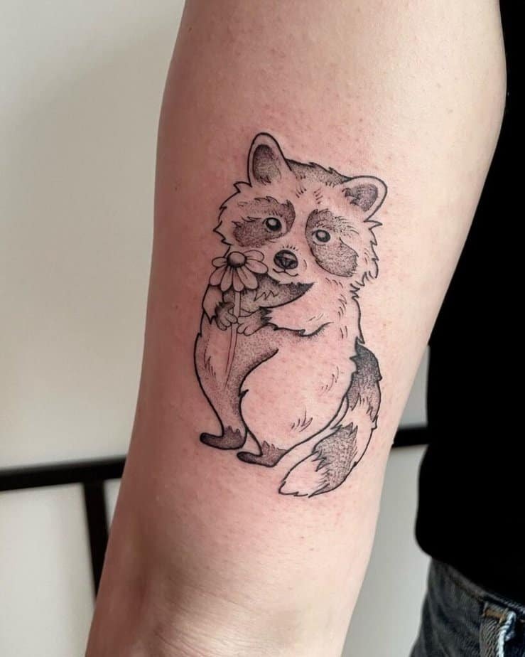 Not every tattoo needs to be complicated. A simplistic cartoon raccoon is endearing in its minimalism; it doesn’t try to be realistic, and that’s exactly why it works. It’s playful, easygoing, and guaranteed to make people grin.
