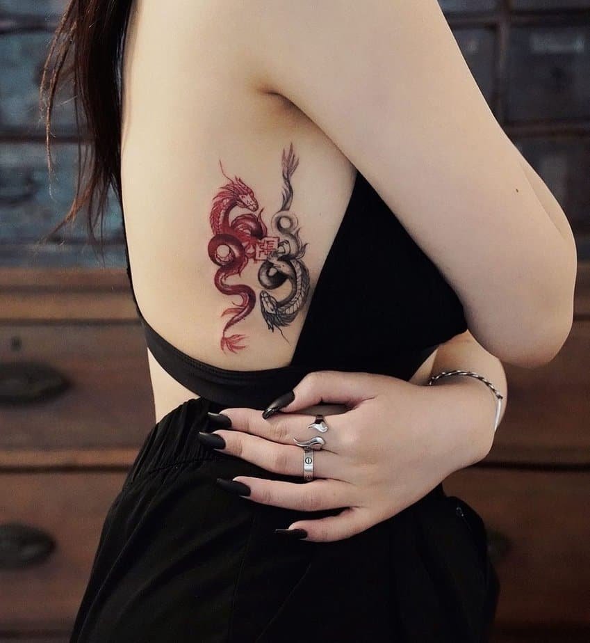 This black-and-red dragon pairing leans into opposites: the red dragon as a bringer of luck and the black dragon as the ruthless one. It’s the visual way of saying you’re wrestling with your demons and also learning to live with them. If you like symbolism that’s a little heavy but still gorgeous, this one does the job.