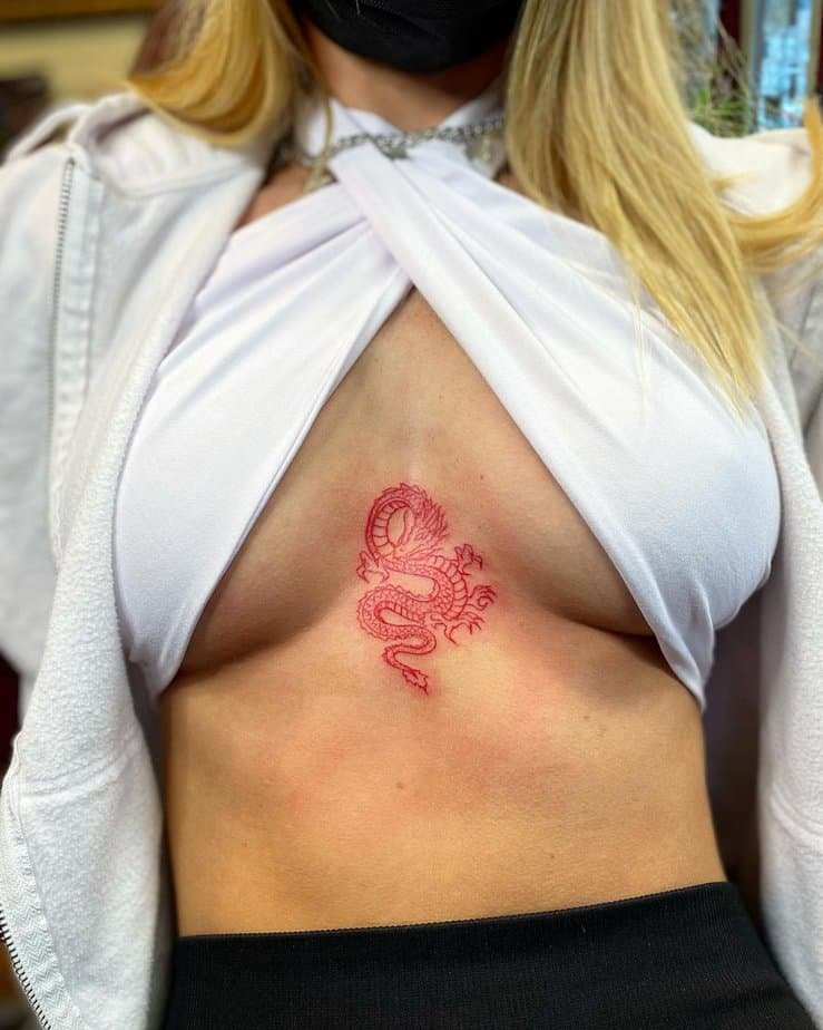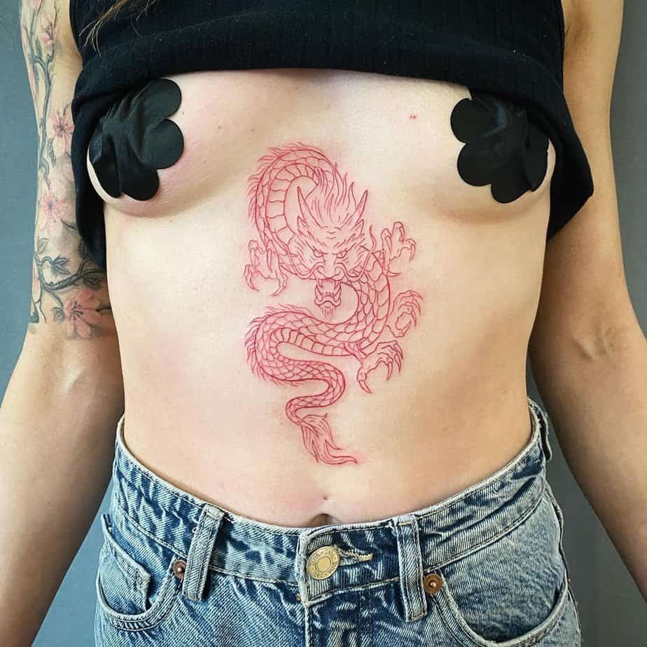 A stomach dragon feels fierce and striking. It’s a statement placement — bold, noticeable, and a little unapologetic. Wear it if you want people to remember your tattoo (and your vibe).