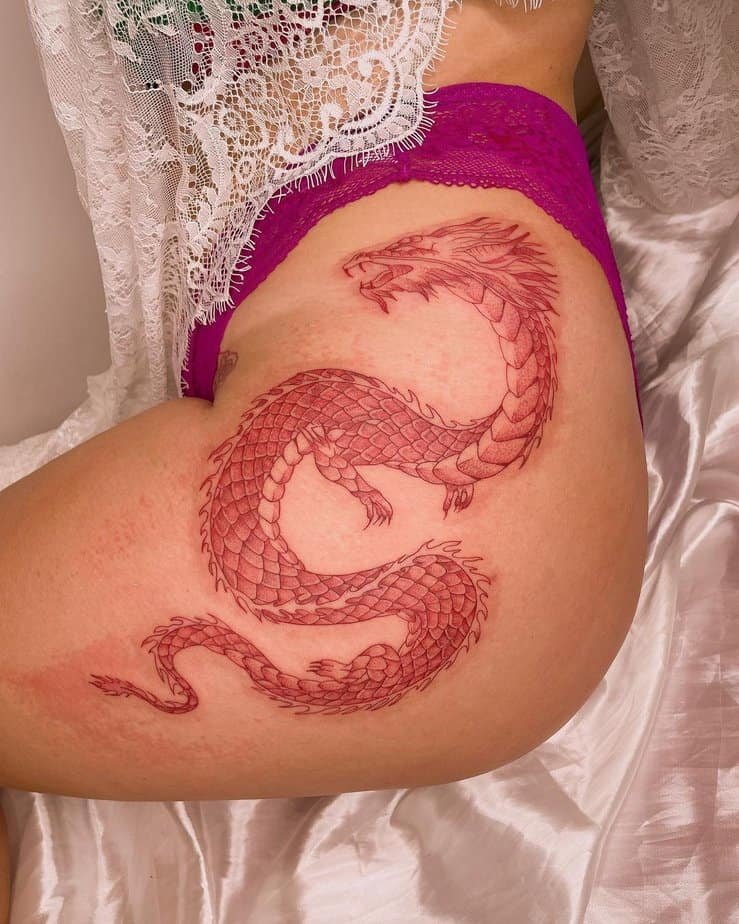 A red dragon on the upper thigh is deliciously private. It’s for people who prefer their badassery to be low-key — the kind of confidence that you carry just for yourself. When it matters, you know it’s there, even if no one else does.