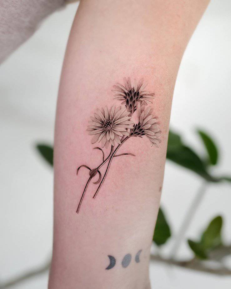 A simple black-and-gray aster can be strikingly sincere. Asters are tied to purity and honesty, so this style works if you want something that reminds you to stay true — to yourself and others. Quiet, thoughtful, and real.