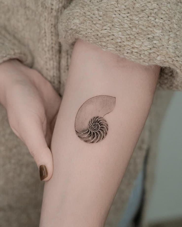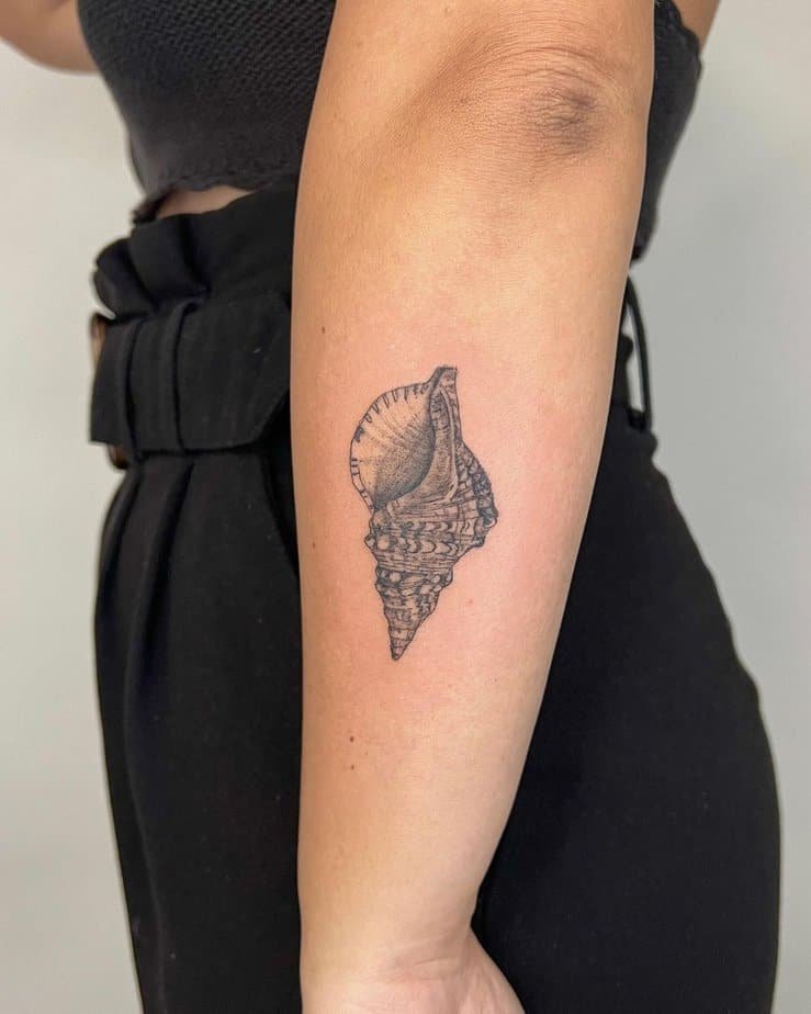 Shell tattoos let you carry something meaningful without screaming for attention. Pick a conch and you’re tapping into ideas of creation, authority, and power — like a little reminder on your arm that you’re allowed to be bold when you need to be.
