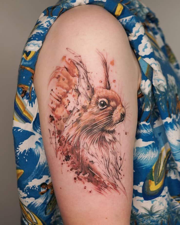 Watercolor tattoos have this soft, artistic magic, and this squirrel rendered in warm browns feels like a brushstroke of character on your skin. It’s beautiful and meaningful without needing to shout.