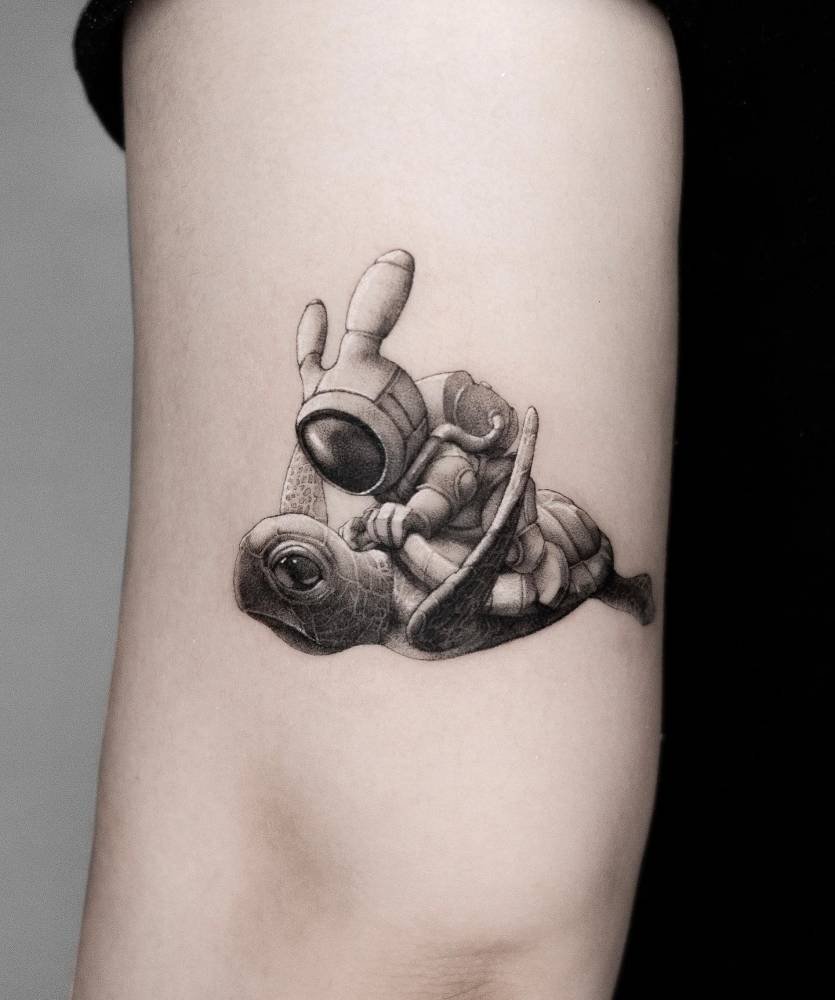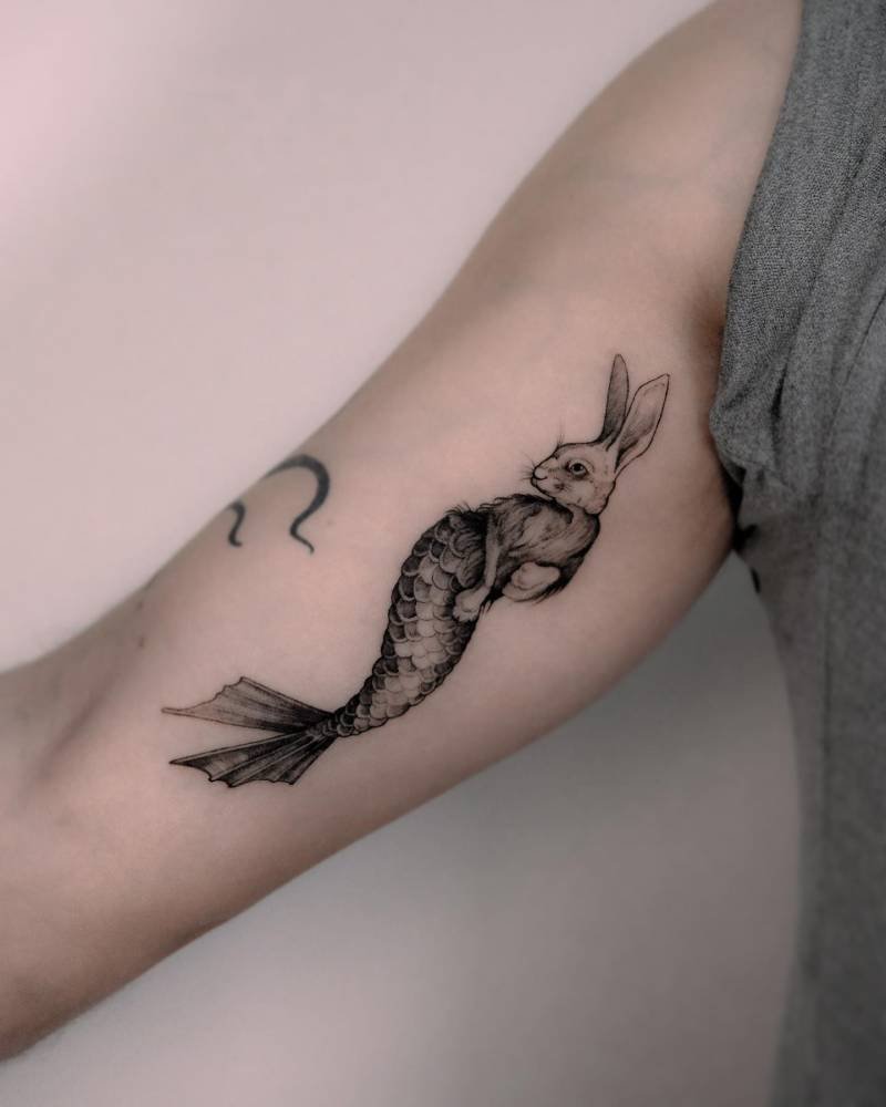 If whimsy had a mascot, this would be it. A rabbit mermaid feels silly at first, then kind of perfect: mermaids for allure and imagination, rabbits for rebirth. It’s a tattoo that screams fresh starts that still feel a little magical.