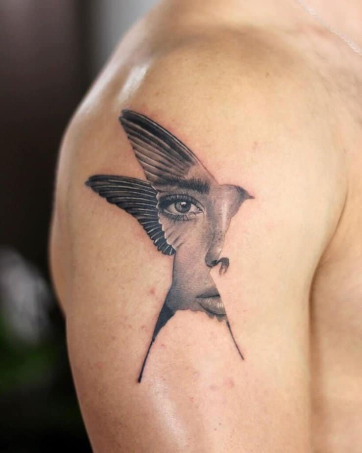 A swallow that doubles as a face — artsy and different
