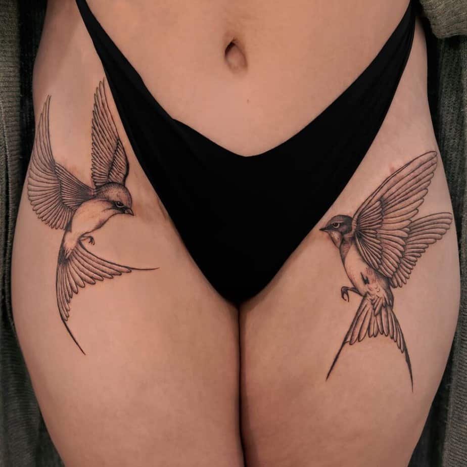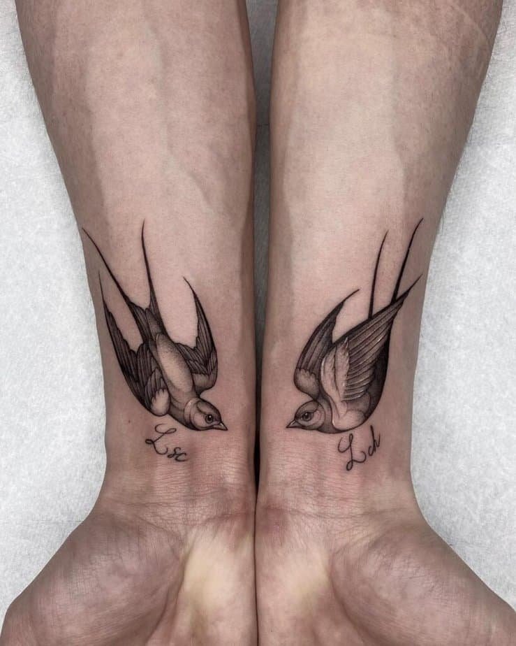 Whether it’s your best friend, partner, or sibling, matching swallow tattoos are sweet and symbolic. They read like a quiet pact — simple, meaningful, and easy to share.