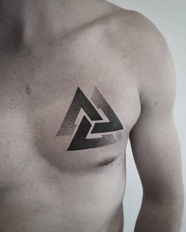 If you want something that feels monumental, go chest blackwork. Big, contrasting blocks of ink around the Valknut give it gravity, and when it sits close to your heart it reads like a vow to resilience. It’s bold in placement and in meaning — strength, courage, and a little theatrical flair.