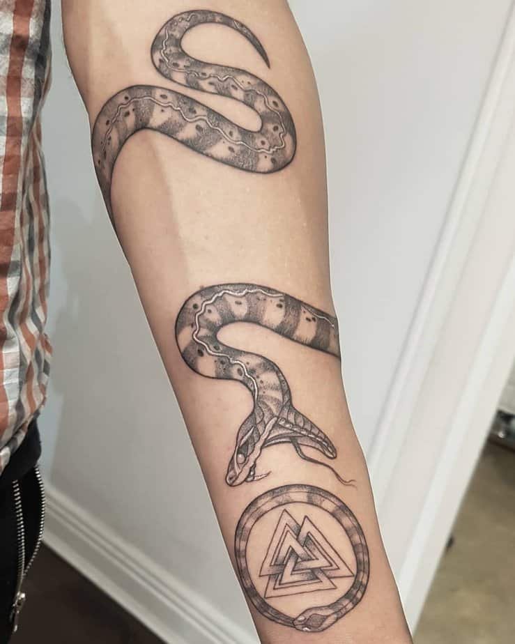 A Valknut being wrapped — or devoured — by serpents