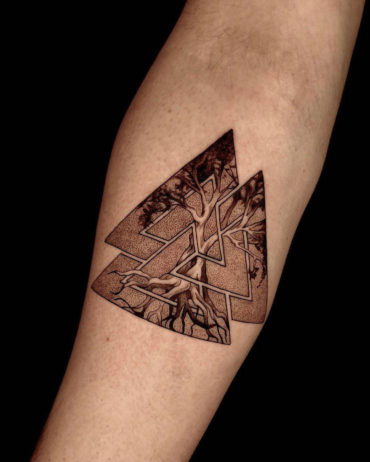 When the Valknut gets detailed, it starts to read like personal history. Think tiny branches, fine lines, or layered textures — it’s telling you that growth isn’t linear. People go through parts of themselves that die away, then rebuild. This kind of tattoo is a little pep talk inked on skin: you can rebuild, again and again.