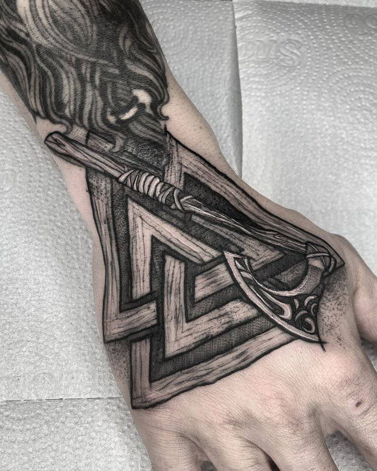 Weapon of the gods — Valknut with an axe