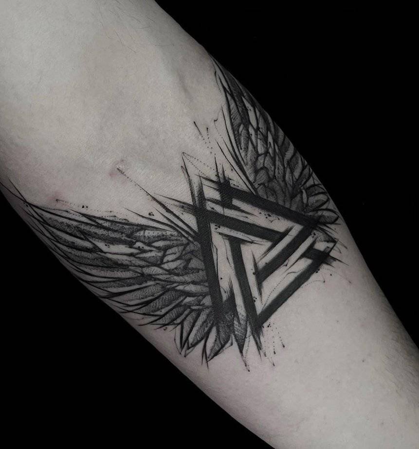 Add wings and suddenly the Valknut leans celestial. The dark, detailed ink brings drama: it’s mythic, it’s striking, and it feels like it could lift off at any moment. Perfect if you want something with both gravitas and movement.