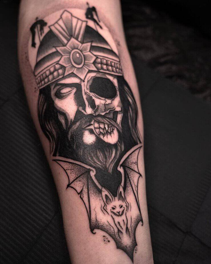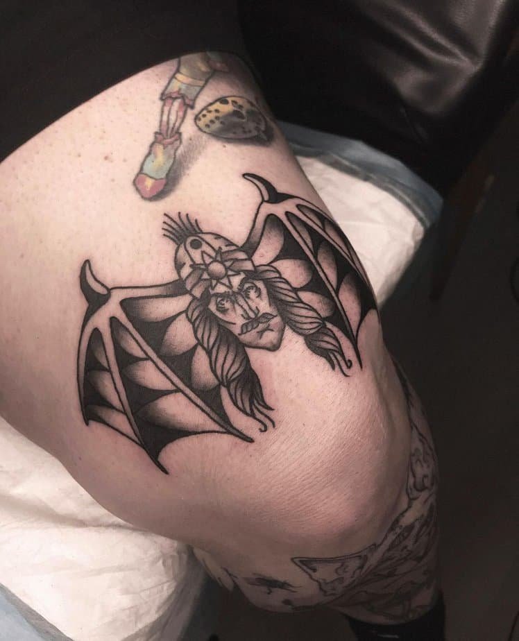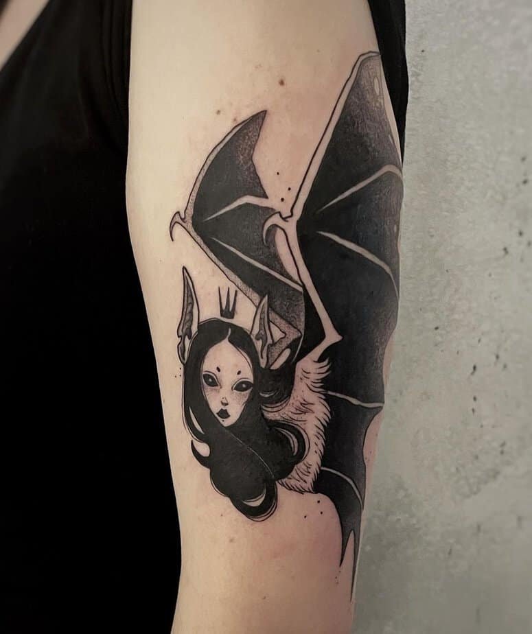 A warrior with bat wings blends fantasy and vampire myth into a striking design. If you want something that feels epic and mythic, this fusion nails it.