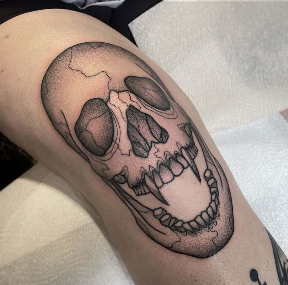 Simple, bold, and very striking — this minimalist fang design proves you don’t need a giant piece to say a lot. Clean lines and iconic imagery for people who like subtlety with attitude.