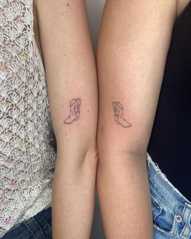 If you’re feeling twin energy with your best friend, cowboy boot tattoos are a cute move. They shout Americana — independence, grit, and that westward wanderlust — and they translate really well into matching little pieces. Simple, symbolic, and oddly flattering on literally anyone.